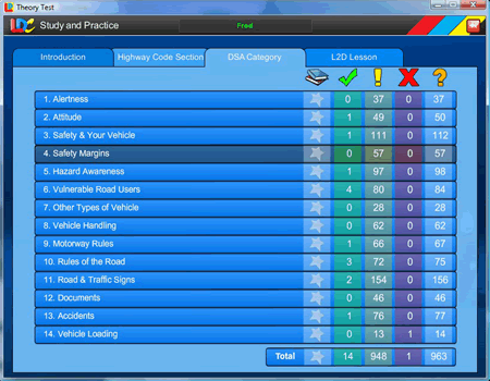 • 14 properly balanced pre-set simulated Theory Tests based on our extensive experience (as one of the largest national driving schools in the UK) of the most commonly occurring test questions all under realistic exam conditions.